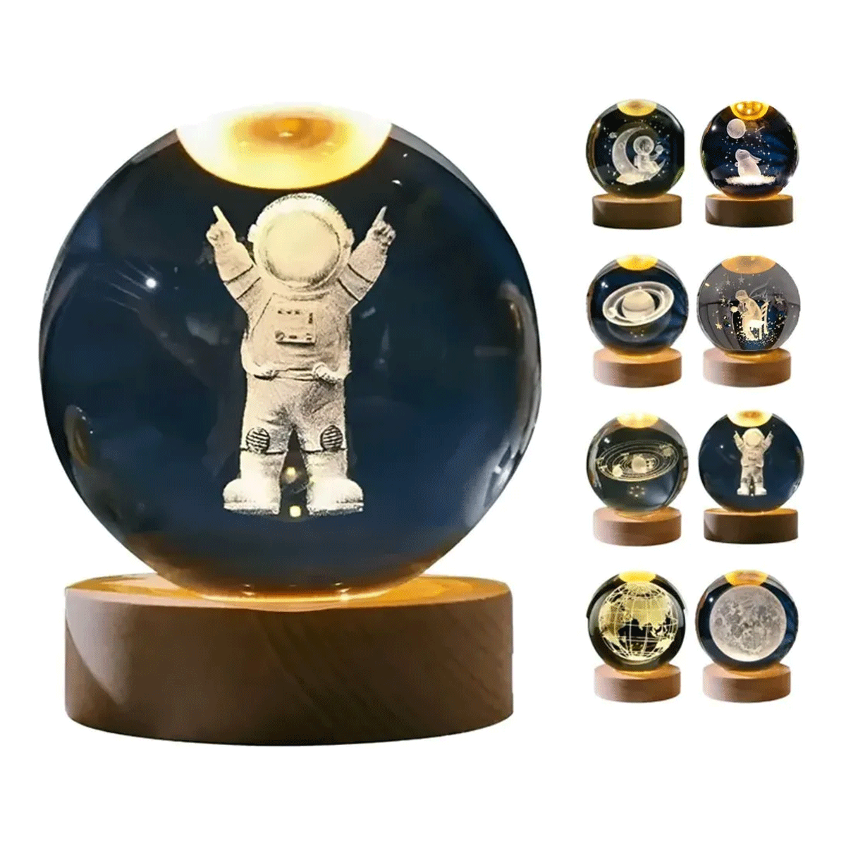La Bola LED de Cristal 3D 8CM – Astronauta combina arte, iluminación y decoración en un solo producto ✨🪐. Su esfera de cristal/acrílico con grabado 3D de alta definición genera un efecto luminoso impactante al encenderse, ideal para crear ambientes cálidos, modernos y relajantes.