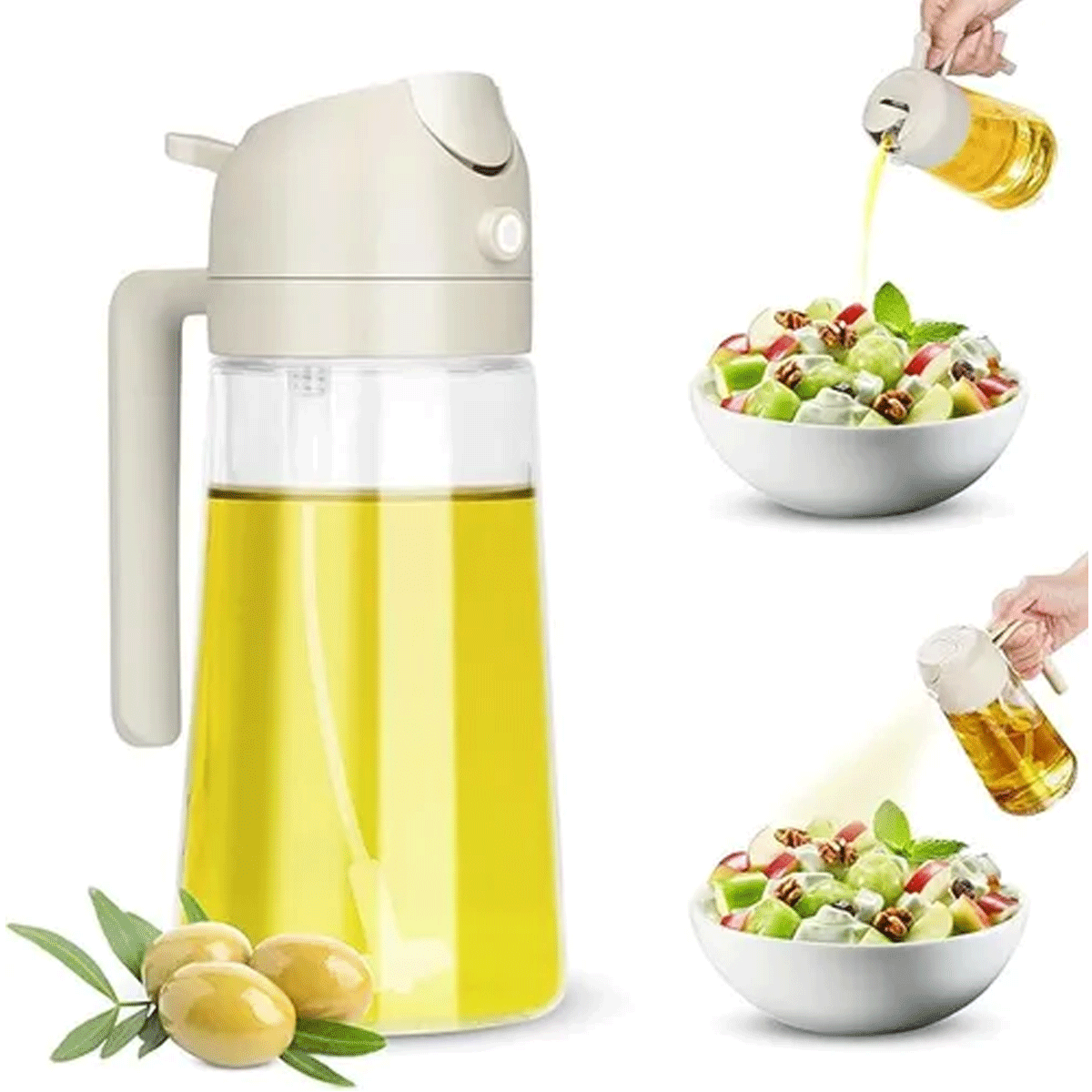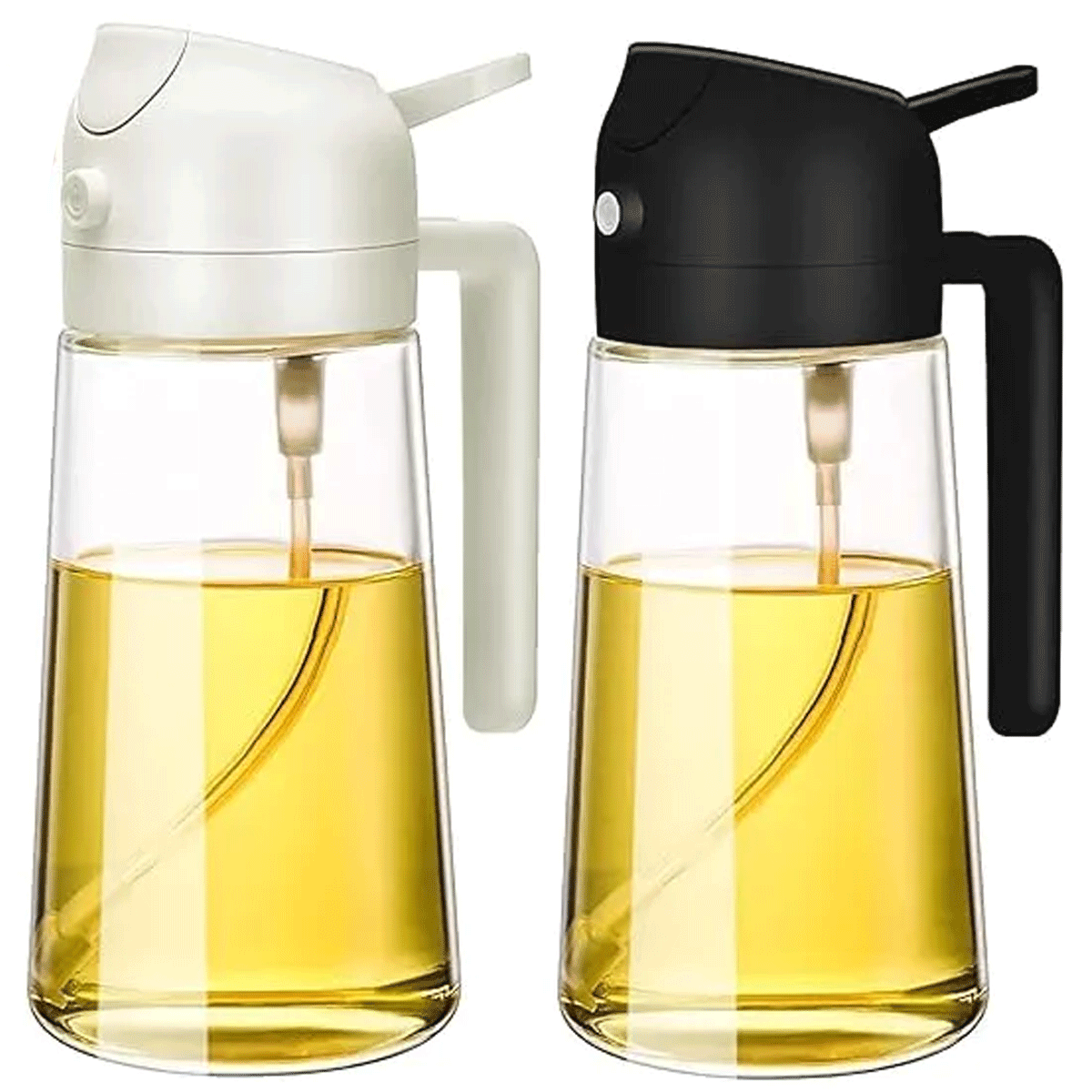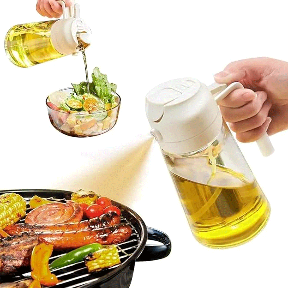 Diseño de doble función y multipropósito: la botella de aceite para cocina ofrece la comodidad de rociar y verter aceite, adecuada para una amplia gama de procesos de preparación de alimentos como aderezo, plancha, asado, parrilla, horneado