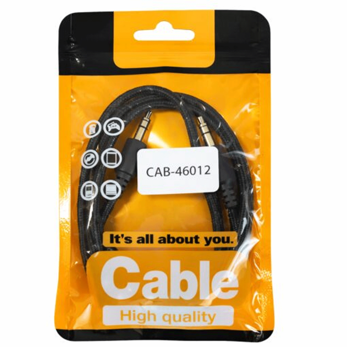 El cable auxiliar cordón 3.5 CAB-46012 es un cable de audio diseñado para conectar dispositivos con entrada de 3,5 mm, como celulares, notebooks, tablets, parlantes y equipos de audio. Permite transmitir sonido de forma directa entre dos dispositivos con puerto auxiliar estándar.