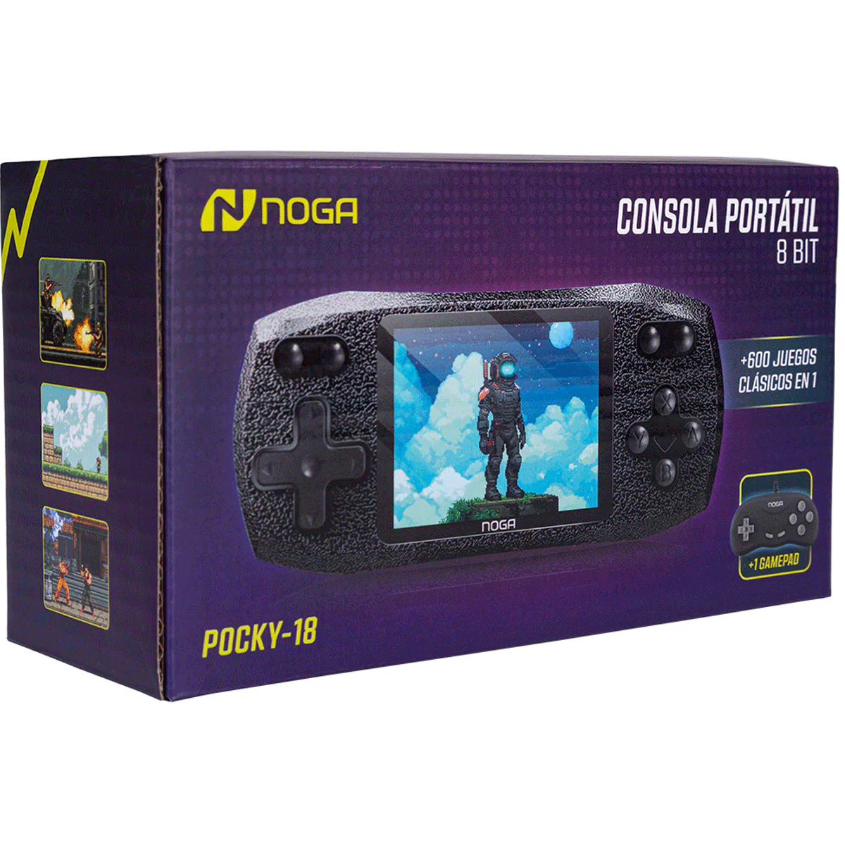 Descubrí la consola más completa y nostálgica del mercado: POCKY 18, diseñada para que disfrutes donde quieras y como quieras. Esta consola portátil trae la magia de los videojuegos clásicos a una pantalla LCD de 2.5 pulgadas, con un gamepad ergonómico que te garantiza un control total en cada partida.