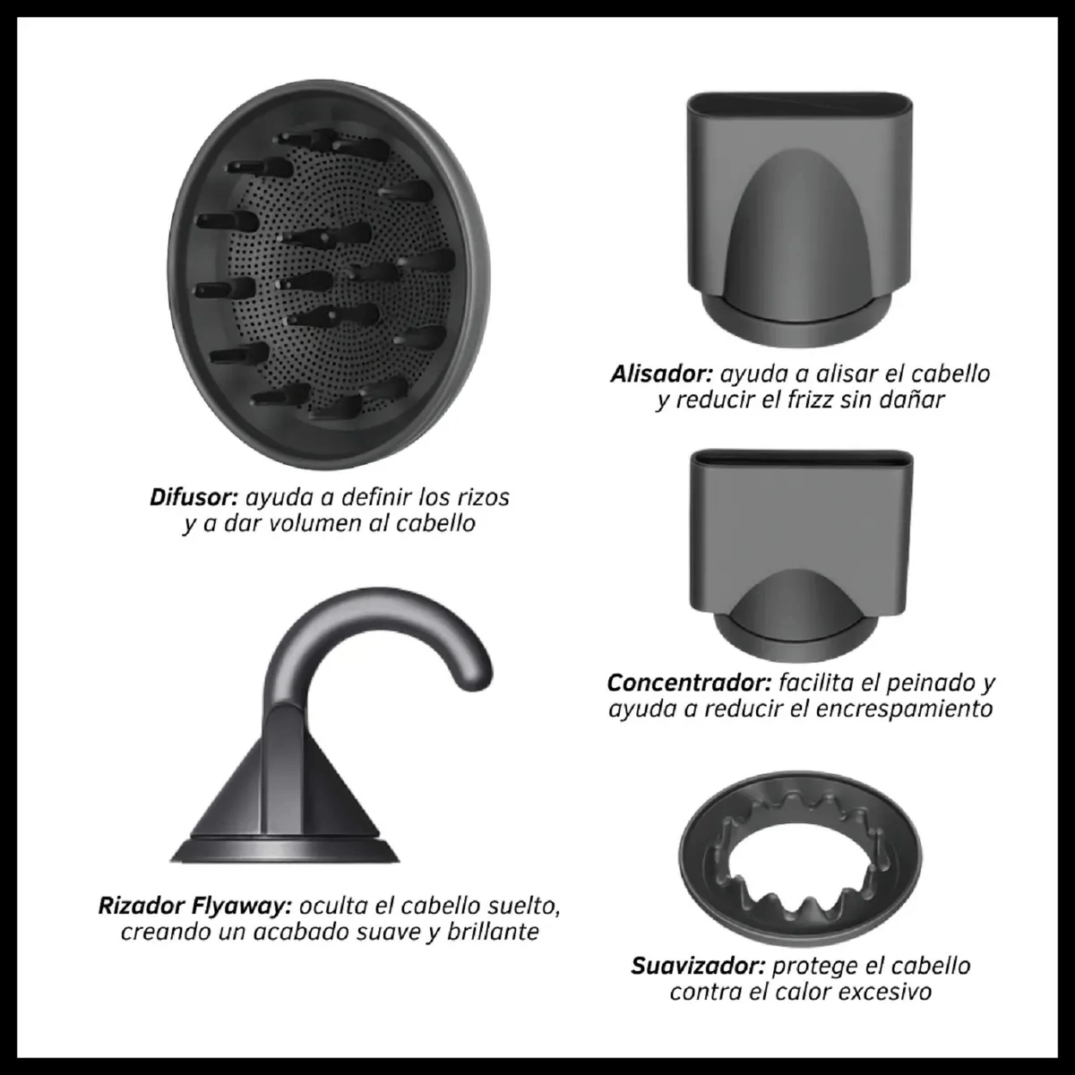 Set Secador de Pelo con 5 boquillas intercambiables Ionico, ultra comodo Premium