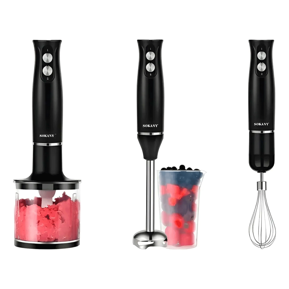 El set mini pimer 4 en 1 SOKANY es un equipo multifunción diseñado para facilitar diversas preparaciones en la cocina con un solo dispositivo.