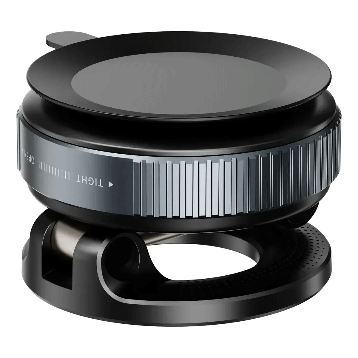 Cuenta con una base con ventosa de fuerte succión que se adhiere a superficies lisas como vidrio, plástico o tablero del vehículo. Su diseño compacto y resistente permite instalarlo fácilmente y retirarlo cuando sea necesario.