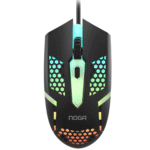 El mouse incorpora 4 botones, rueda de desplazamiento y selector de DPI ajustable en 800, 1200 y 1600, permitiendo adaptar la sensibilidad. Incluye retroiluminación RGB y conexión USB para una experiencia completa.