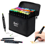 El set de marcadores doble punta MKB-60 incluye 60 colores diseñados para dibujo, ilustración, diseño y coloreado. Cada marcador cuenta con dos puntas diferentes que permiten realizar trazos finos para detalles y trazos más anchos para rellenos o sombreado.